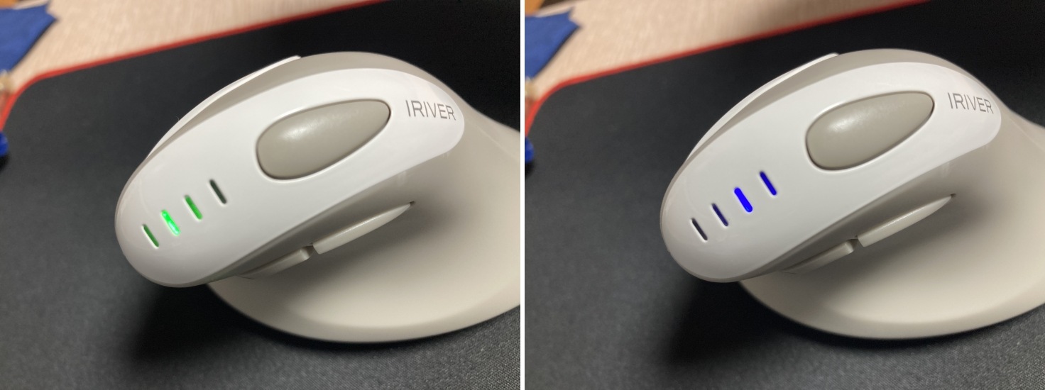 이 마우스의 또 다른 장점은 무선 2.4g 뿐만 아니라 블루투스로도 연결할 수 있다는 점인데요. 블루투스를 통한 2기기 연결을 지원해서 무선 2.4g까지 총 3개의 기기에 연결 시켜놓고 사진에 보이는 가운데 스위치 버튼으로 모드 전환해가며 사용할 수 있습니다.