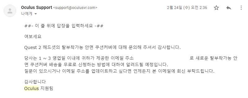 이후, 오큘러스 홈페이지의 따로 마련된 신청 페이지에서 접수받기 시작했고 초반만 해도 신청만 하면 무조건 보내줬기 때문에 이러한 소식이 전세계 커뮤니티로 퍼지기 시작했습니다. 그러다 오큘러스측에서 전세계적으로 쏟아지는 수요를 감당하기 버거웠는지 직접적으로 피부 자극을 경험한 유저 위주로(의사의 처방 혹은 피부 사진 등록 필수) 접수를 받았고 그렇게 지나가는듯 싶었으나..