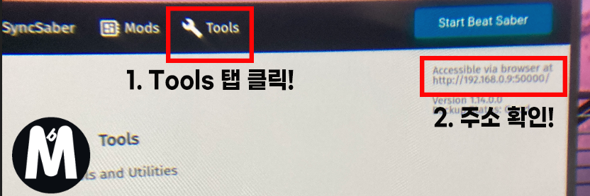 1) Songloader.qmod를 설치했을때처럼 퀘스트2와 PC가 같은 네트워크 환경에 있어야 합니다.