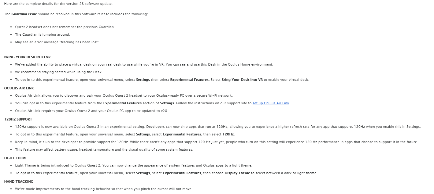 오큘러스 공식 블로그에 소개된 V28 펌웨어 내용입니다. 일부 작은 버그 수정에 그쳤던 V27 업데이트때와 달리, 대규모 기능을 업데이트하려는 모양인데요. 일단 소프트웨어 내역은 다음과 같습니다.
