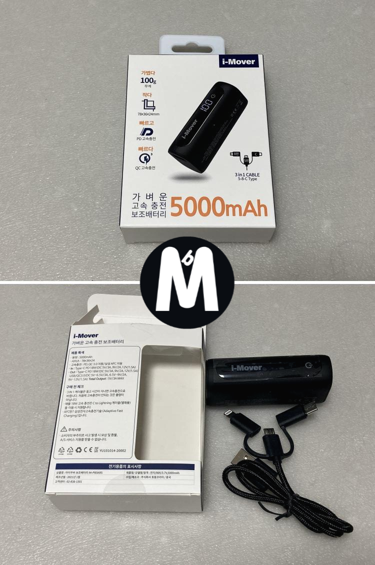 10000짜리는 빠르게 움직여야 하는 게임하면 불편할것 같아서 패스하고 5000짜리로 구매하기로 결정한 후 최종적으로 가볍고 작은 아이무버 보조배터리를 발견하게 되어 이걸로 구매했습니다.
