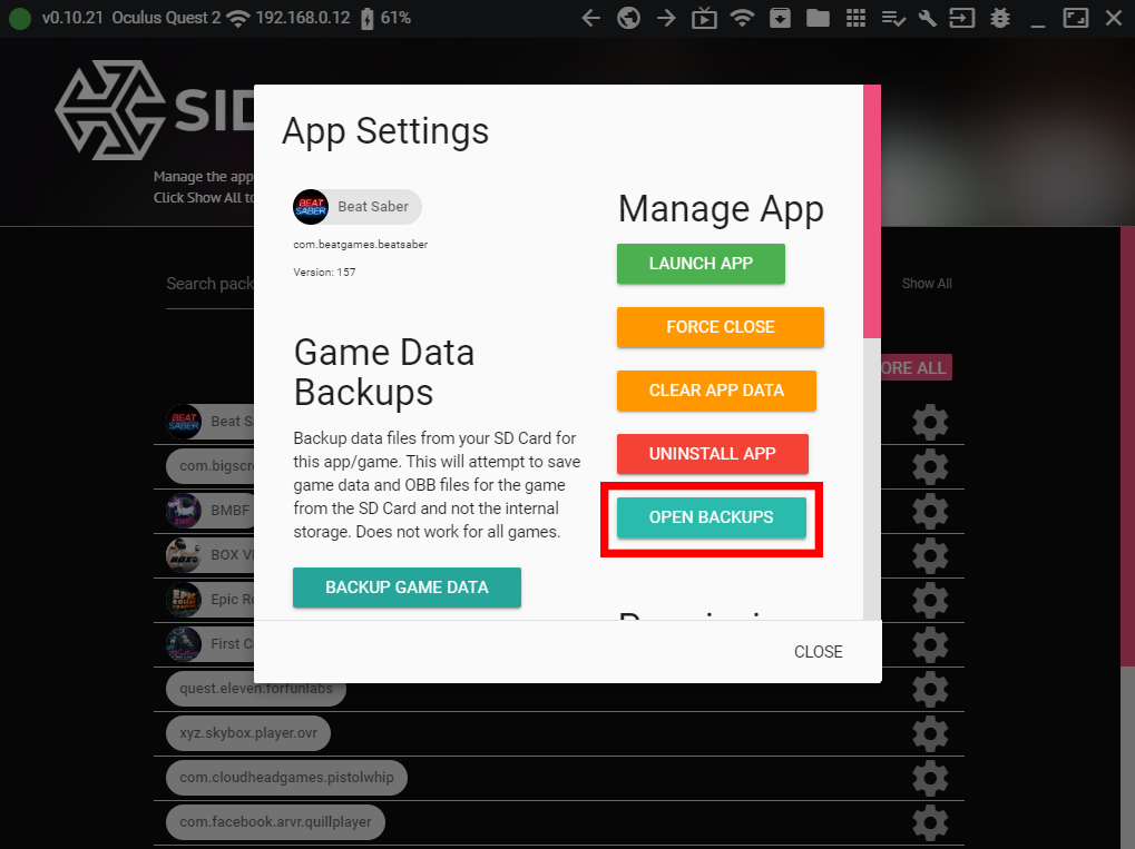 ※ 비트세이버 백업을 위해서는 사이드퀘스트 프로그램이 필요합니다.