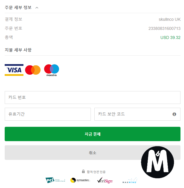 최종 결제창이 뜨면 해외결제가 가능한 카드를 준비하셔서 카드번호와 유효기간, 보안코드를 입력하신 다음