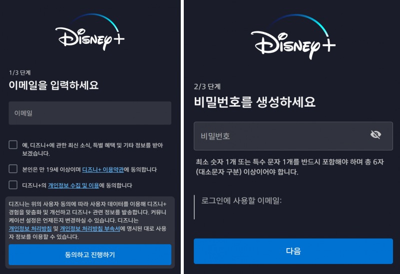 디즈니 플러스 가입 및 구독 과정은 총 3단계로 엄청 간단합니다.