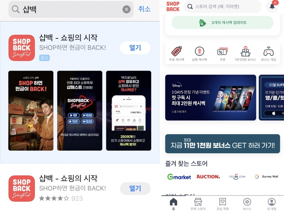 개인적으로도 이베이츠 코리아 시절부터 계속 써왔었고 현재까지도 종종 사용하고 있는 사이트입니다. 저는 주로 알리익스프레스 쇼핑시 이용하고 있고 가끔 G마켓이나 옥션에서 금액이 큰 제품을 구매하게 될경우 샵백을 경유하고 있습니다. 혹은 이번 디즈니 플러스처럼 캐시백을 많이 해주는 이벤트때도 잘 쓰고 있습니다.