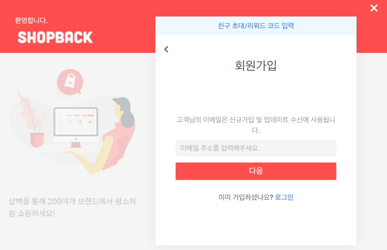 참고로 가입하실때 초대링크를 통해 가입하시거나 또는 가입시 초대 코드를 기입하시면 샵백 경유하여 물건 구매시 보너스 적립금을 받을 수 있으니 챙겨가시기 바랍니다.