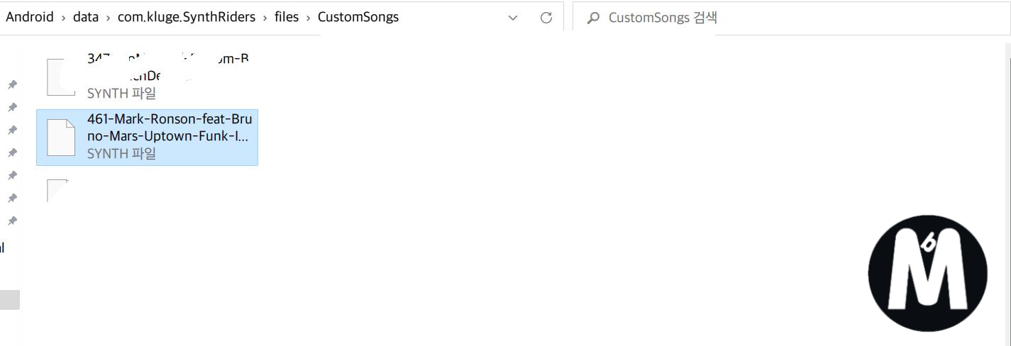 | 곡: Quest2 - 내부 공유 저장용량 - Android - data - com.kluge.SynthRiders - files - CustomSongs 플레이리스트: Quest2 - 내부 공유 저장용량 - Android - data - com.kluge.SynthRiders - files - Playlist |