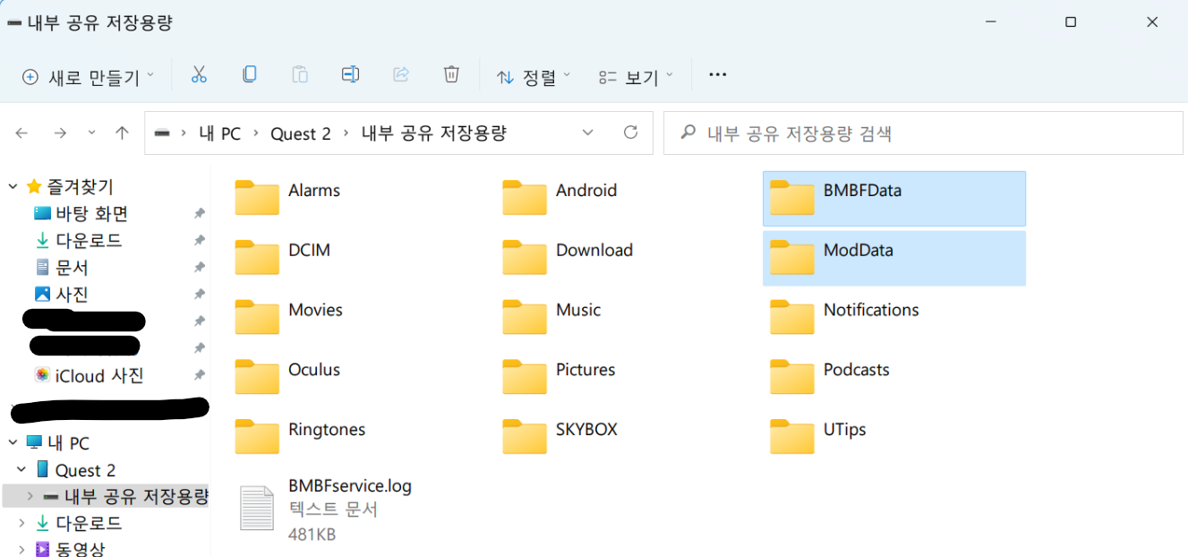 그럼에도 조심해서 나쁠건 없으니 퀘스트2를 컴퓨터에 연결하여 BMBFData 및 ModData 폴더는 백업해두시는걸 추천드립니다.