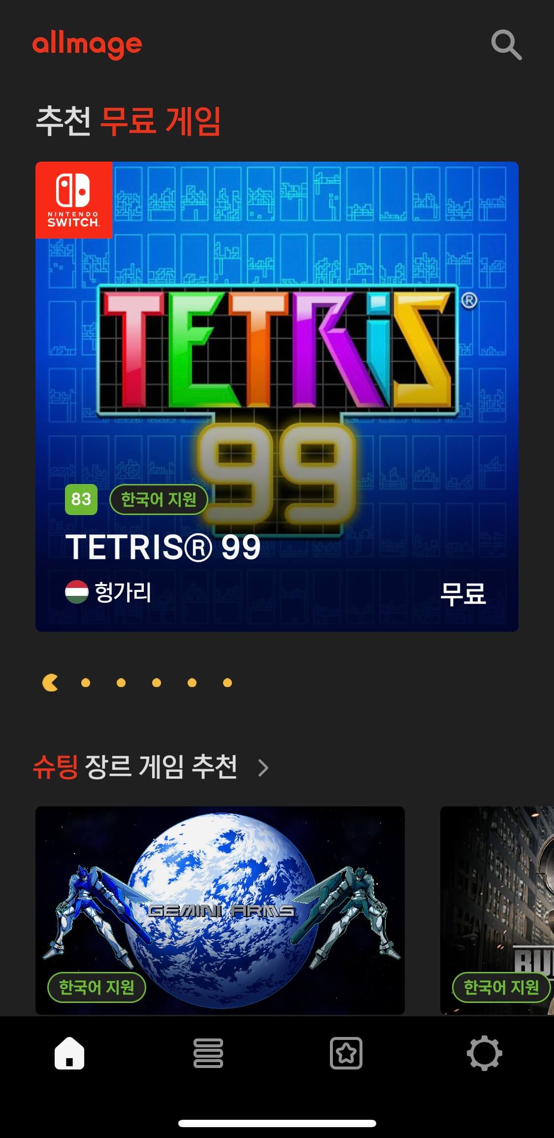 올마게는 국내 기업 엔미디어플랫폼에서 가장 최근에 출시한 따끈따근한 앱으로, 앱 디자인도 깔끔하고 기능도 좋은 앱입니다. 기본적으로 국가별 가격 정보와 가격 및 기간을 알 수 있으며 자신이 찜해놓은 게임이 할인 시작하면 알림으로 알려줍니다.