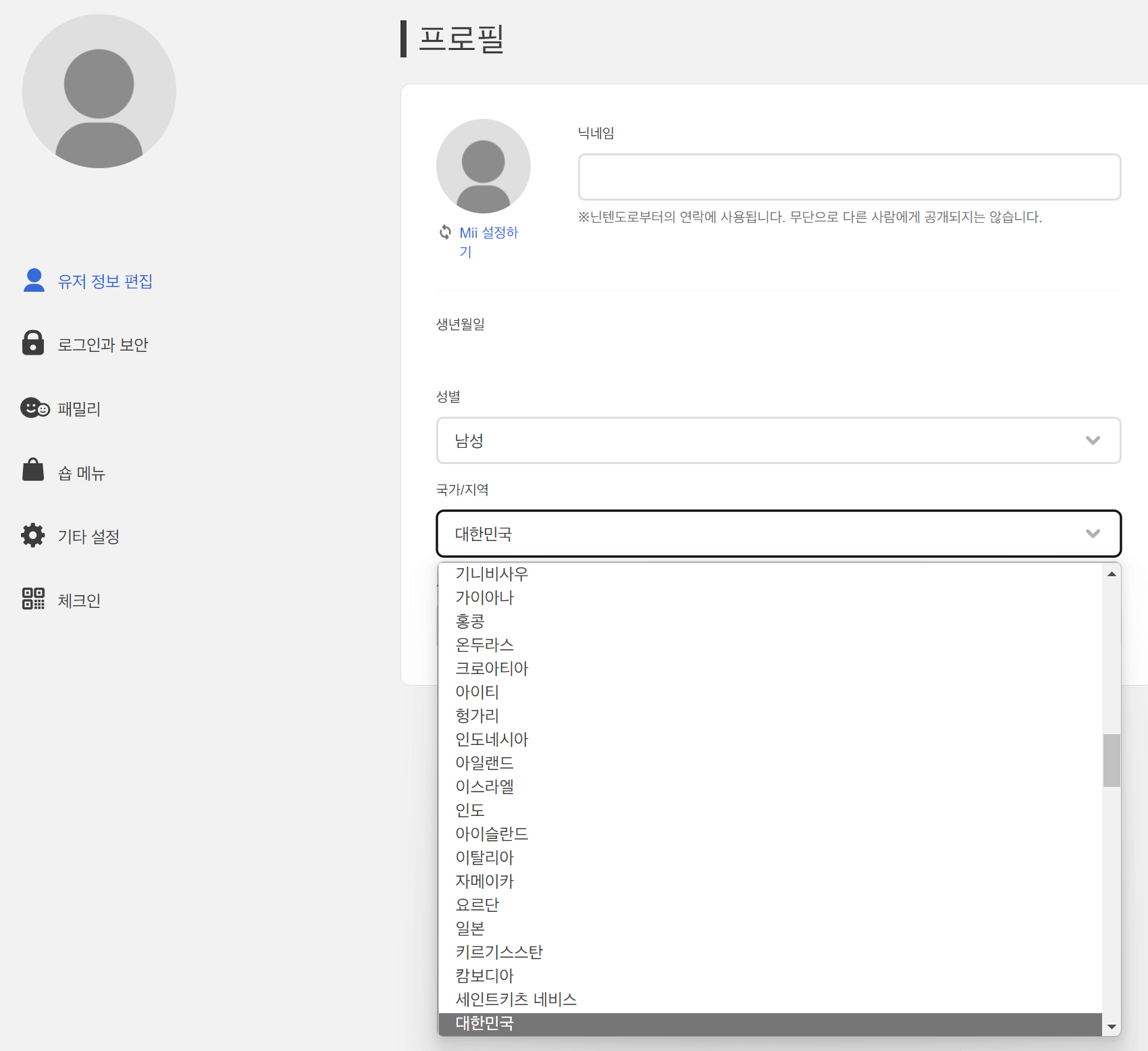 방법은 매우 간단합니다. 마이 닌텐도 페이지에서 "계정 - 프로필 - 유저 정보 편집 - 원하는 국가/지역 선택" 으로 변경한 뒤, 닌텐도 스위치 본체에서 다시 로그인해주면 됩니다.