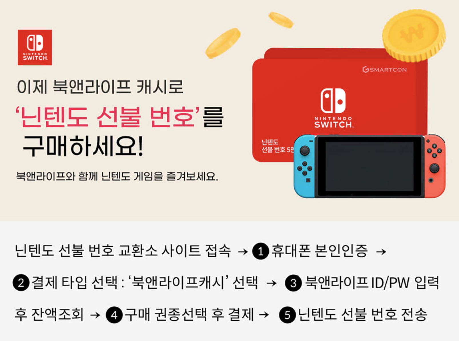 먼저 북앤라이프 상품권을 구입하여 캐시로 충전한 다음, 해당 북앤라이프 캐시를 선불번호로 교환하면 됩니다. 저 같은 경우에는 주로 3만원 이상의 선불번호는 대원샵에서 구입하고 5천원이나 1만원권은 북앤라이프로 구입하는 식으로 이용하고 있습니다.