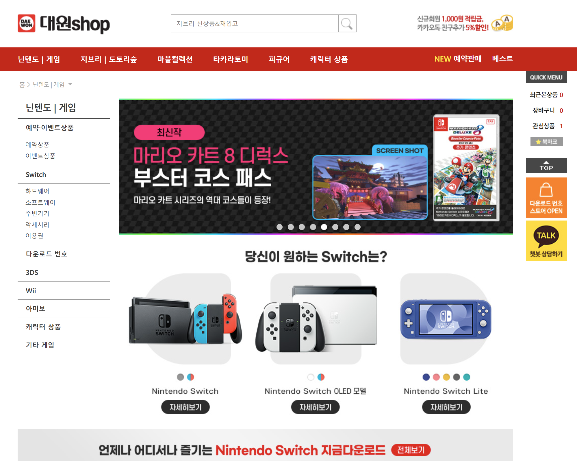 흔히 알려져 있는 11번가, G마켓, 옥션 등의 오픈마켓 말고 콘솔 게임 위주로 상품을 판매하는 곳이 있습니다. 그 중에서 닌텐도 게임 쪽으로 유명한건 대원샵과 소프라노인데요. 좋은 쇼핑 혜택 때문에 자주 이용하고 있습니다.