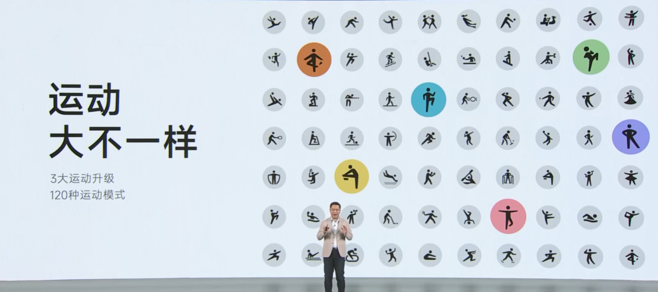 미밴드6는 30여가지의 운동 측정이 가능했는데 이번 미밴드7은 위의 사진에서 강조된 주요 6가지의 홈 스포츠를 포함하여 대폭 증가한 120개의 운동 측정을 제공합니다.
