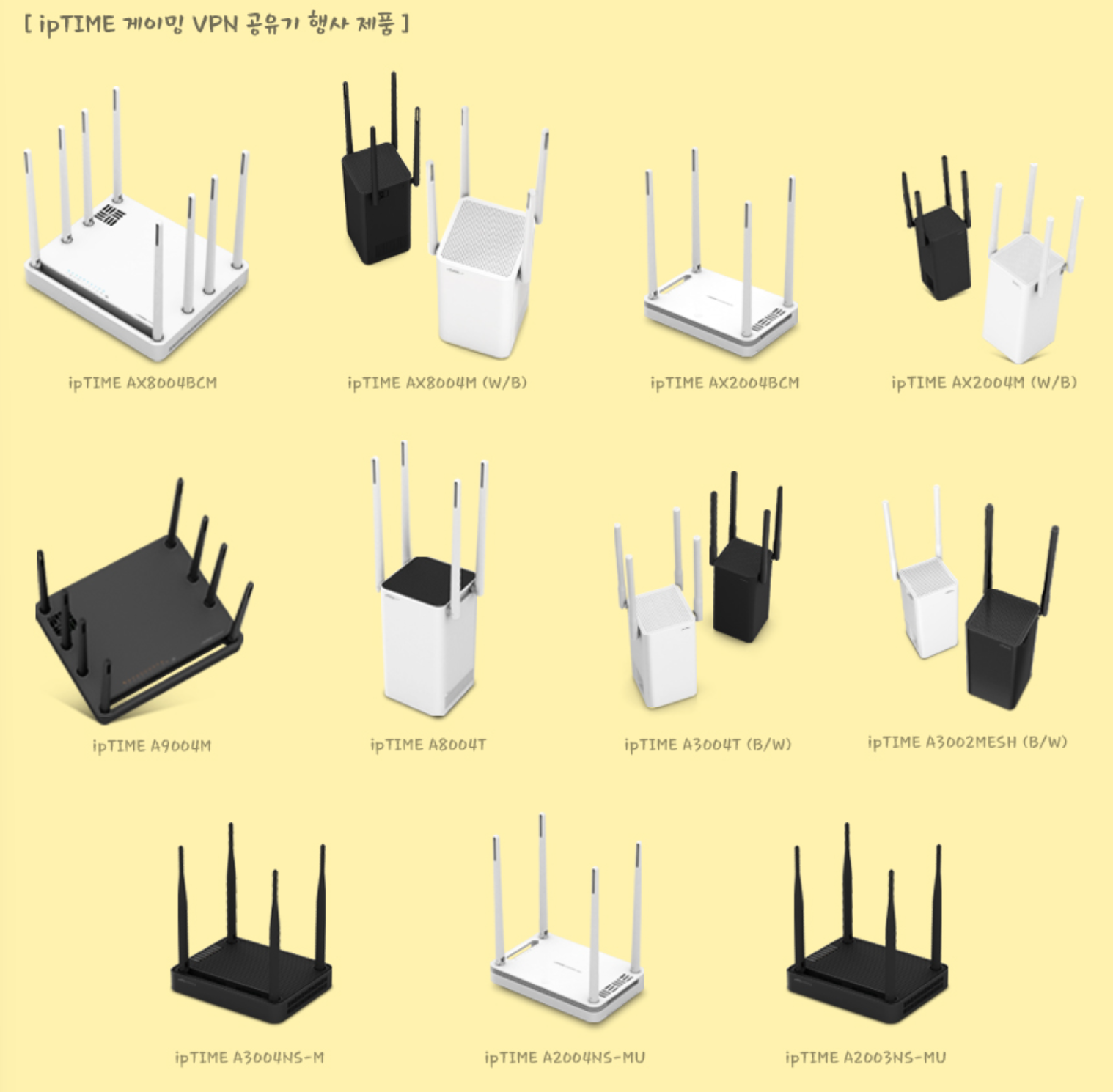 모든 iptime 공유기 제품이 이벤트 지원 대상은 아니지만 보통 신제품이면 대부분 해당 이벤트 지원이 가능합니다. 현재 시점 기준으로아래 제품을 구매하셨다면 이벤트 신청이 가능합니다: