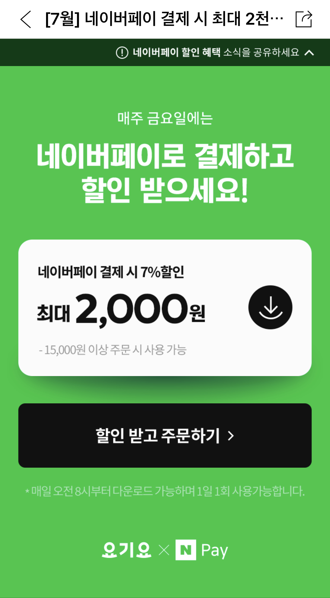 네이버페이로 결제시 최대 2천원 할인해주는 쿠폰입니다.