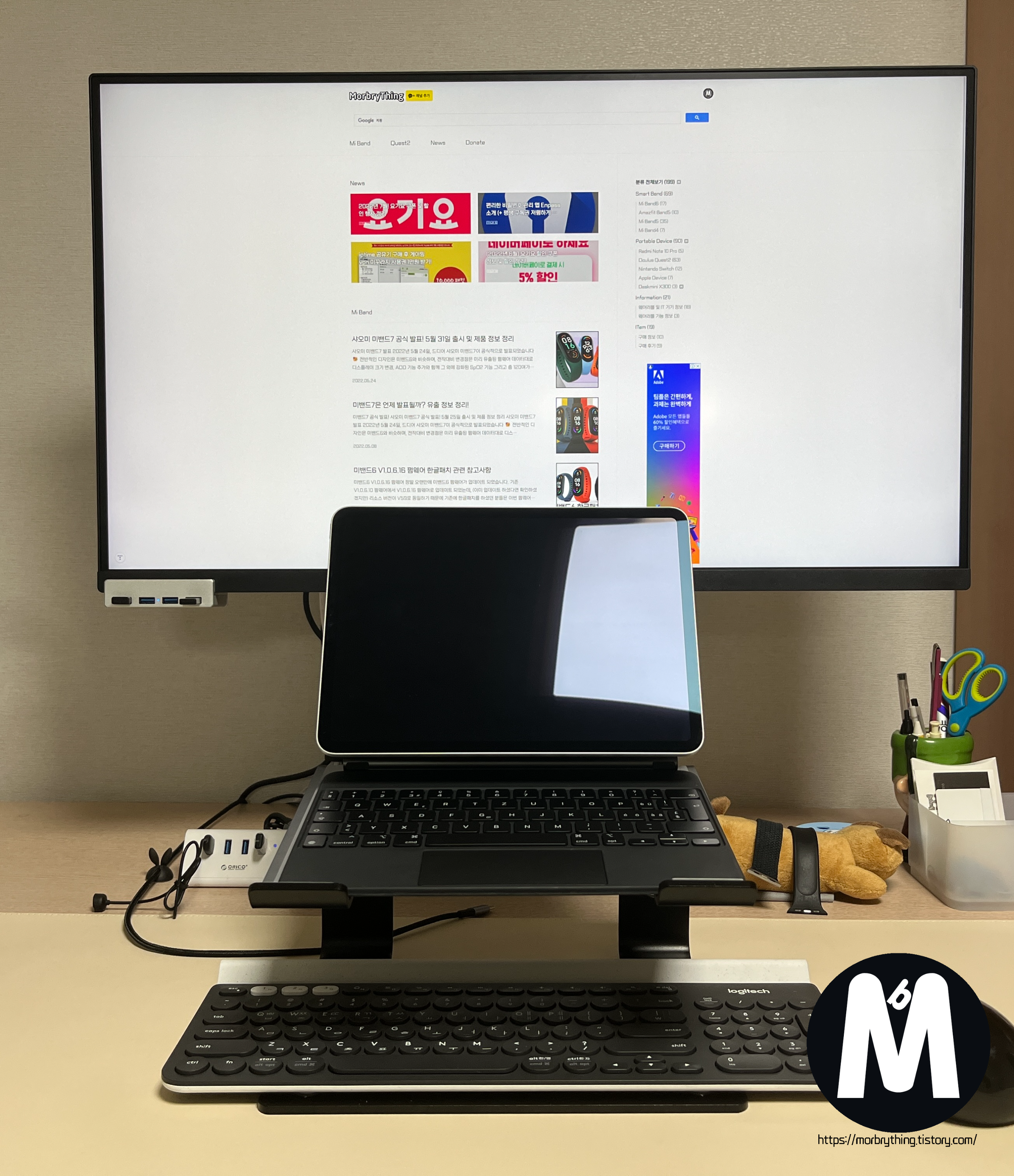전 데스크탑 PC가 있지만 집에 있을때도 아이패드 + 매직키보드를 자주 사용하는 편입니다. 웹서핑이나 유튜브 시청같은 간단한 작업(?)은 아이패드로도 충분하기 때문에 그렇게 사용하고 있는데요.