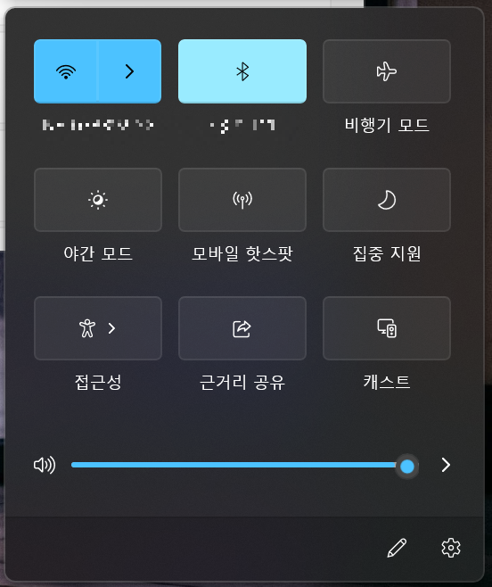 설치가 완료되면 빠른 메뉴에 와이파이와 블루투스 메뉴가 제대로 표시됩니다.