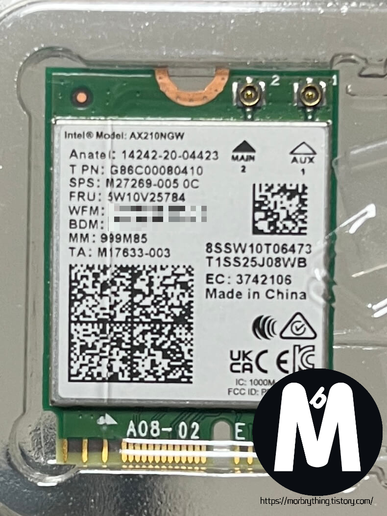 AX210은 기본적으로 와이파이6E와 블루투스 5.2를 지원하며 안테나 최대 2x2, 그리고 최신 윈도우 운영체제인 윈도우11을 지원합니다. 또한 M.2 폼펙터이기 때문에 X300에 안성맞춤인 무선랜카드라고 할 수 있습니다.