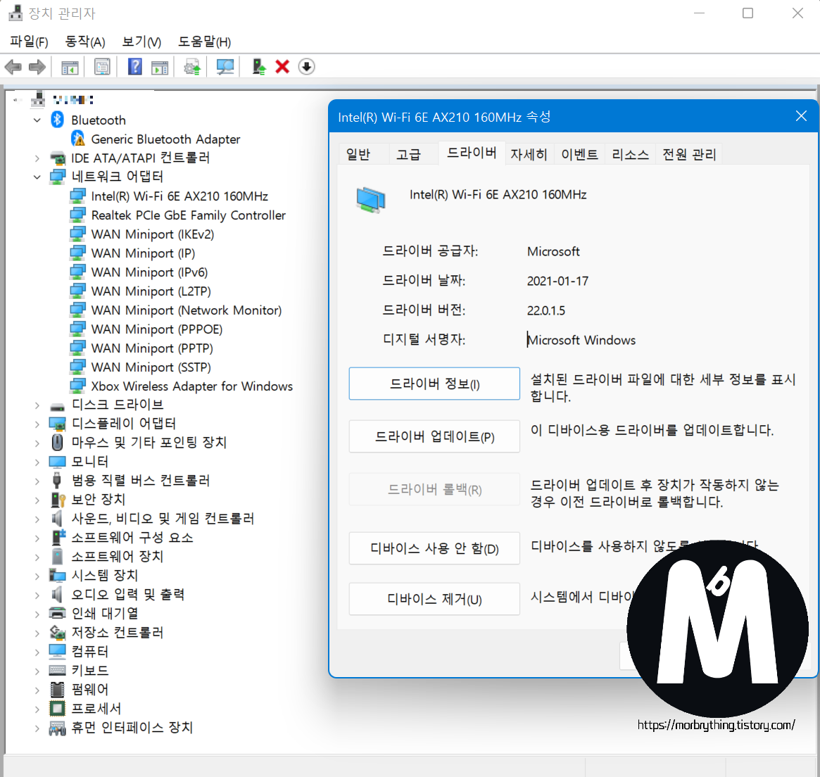 Wi-Fi는 따로 드라이버 설치를 안해줘도 제대로 작동하지만 블루투스는 드라이버를 설치해줘야 합니다. 윈도우11 기준으로 따로 드라이버를 수동으로 설치해줄 필요는 없고 윈도우 업데이트로 자동으로 설치가 됩니다.