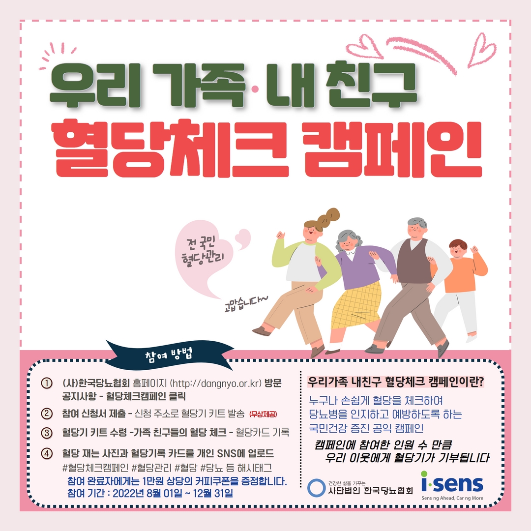 2022년 8월 1일부터 한국당뇨협회에서 혈당체크 캠페인을 실시하고 있습니다.
