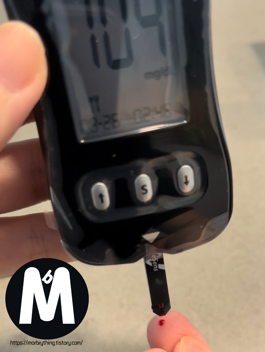 혈당 측정은 아침에 일어나서 체크하는게 가장 좋고 아니면 밥 먹고 2시간 이후에 측정하는것이 베스트라고 합니다!