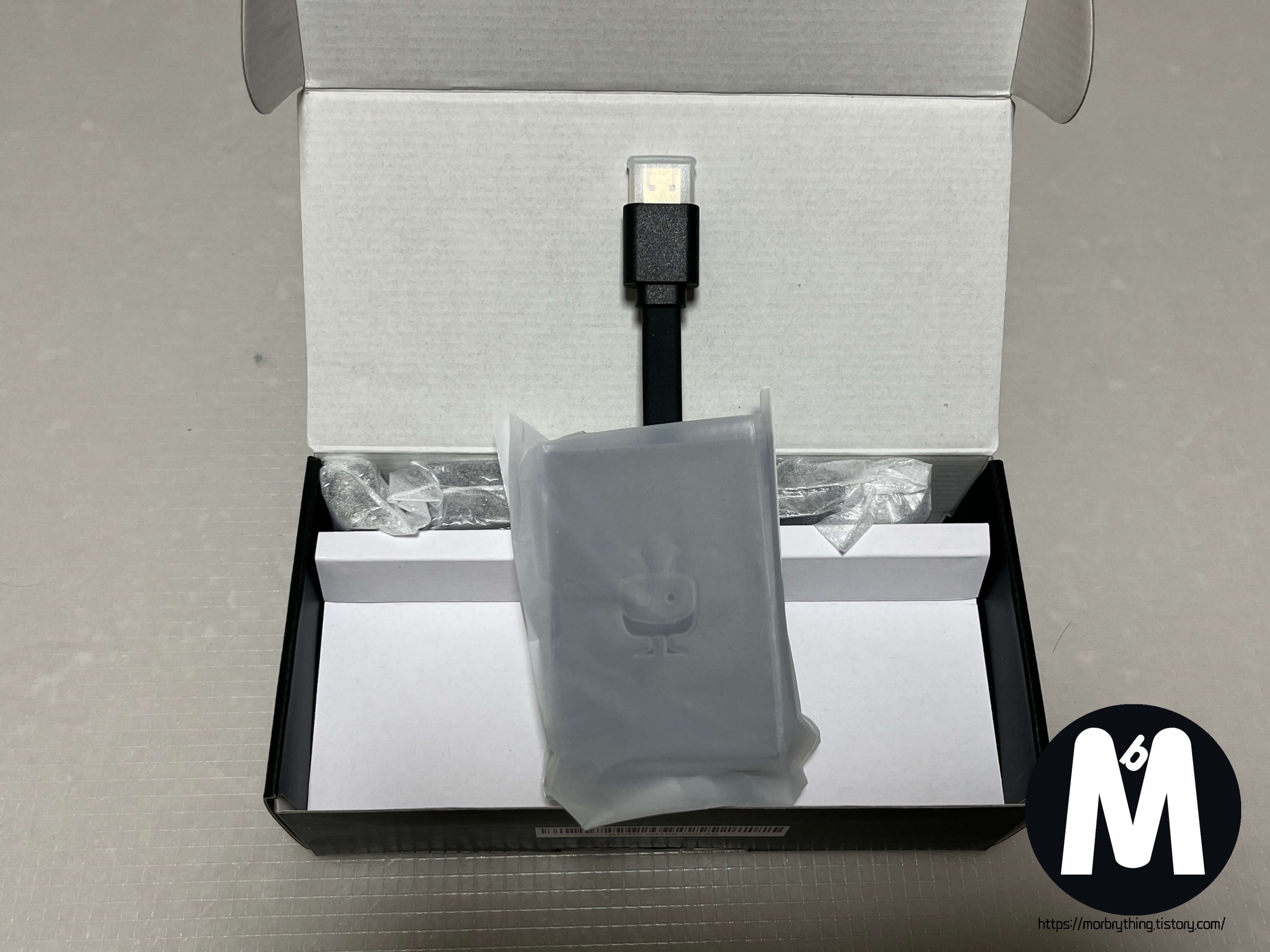 티보 구성품에는 위에서 언급했다시피 전원 케이블과 어댑터가 동봉 되어 있는데 보통 USB 전원인 경우 어댑터를 챙겨주지 않거나, USB 케이블을 1m 정도밖에 안되는 짧은 케이블을 줘서 곤란할때가 많은데
