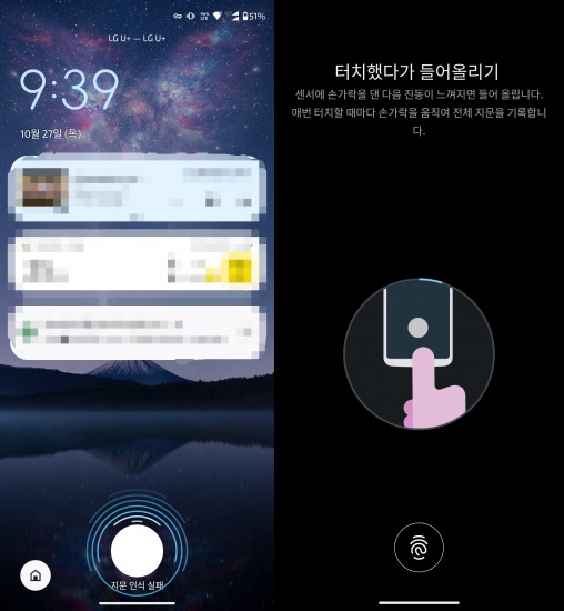 참고로 지문 인식시 나오는 애니메이션은 위의 스크린샷에 나오는 것 말고도 2가지 더 있습니다.