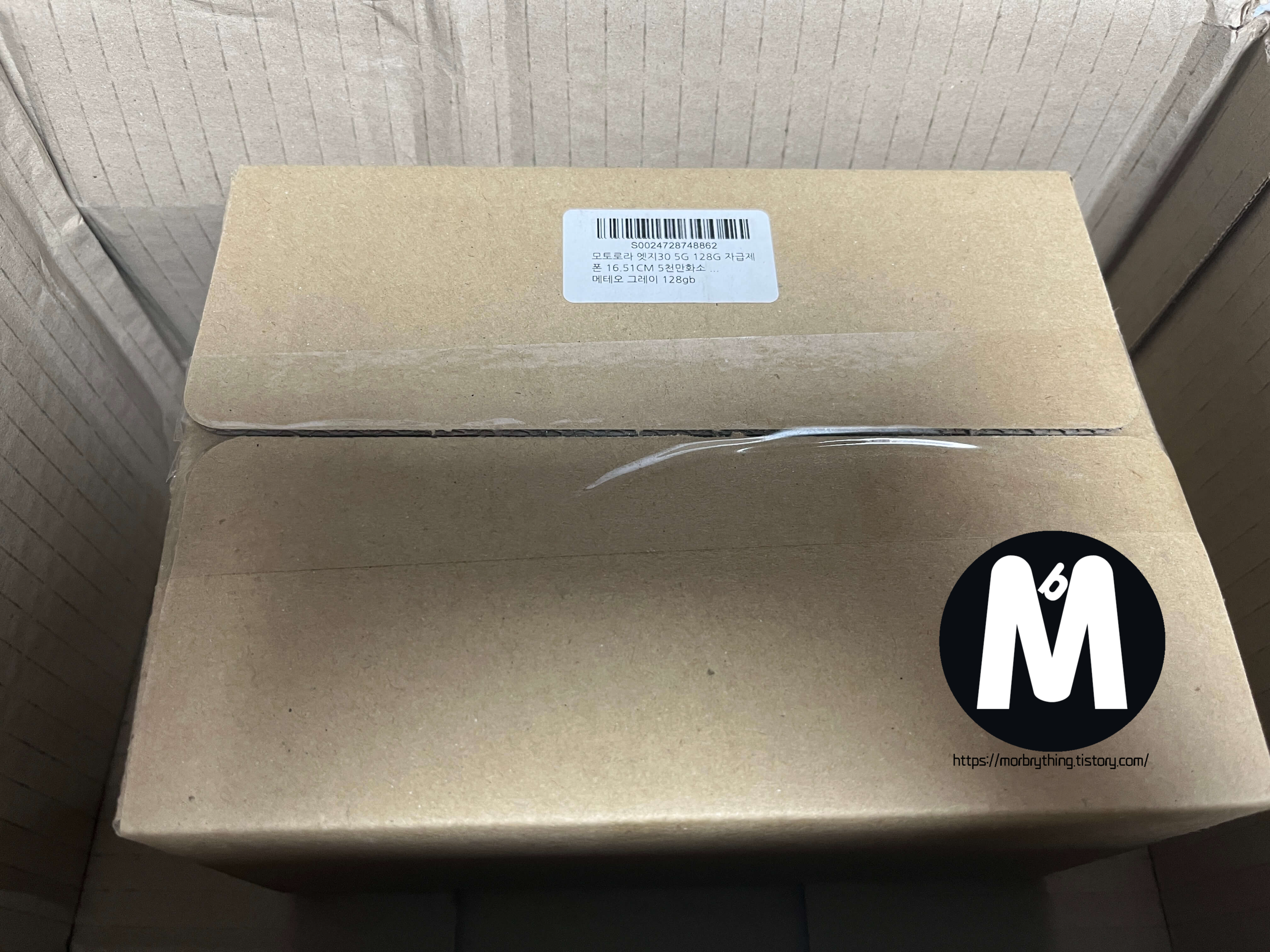 박스를 열기 위해서는 박스 뒷면에 있는 모토로라 봉인 라벨을 제거해줘야 합니다. 칼로 스윽 긁어주고 박스를 열어봅니다.