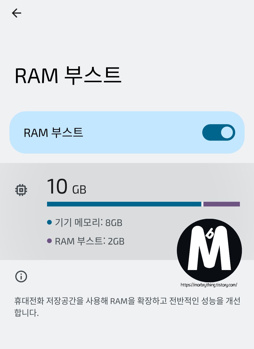 8기가 램 + 부스트 램으로 인해 일반적인 환경에서 램이 부족한 경우는 거의 없으며, 멀티태스킹 시에도 유연한 모습을 보여줍니다.