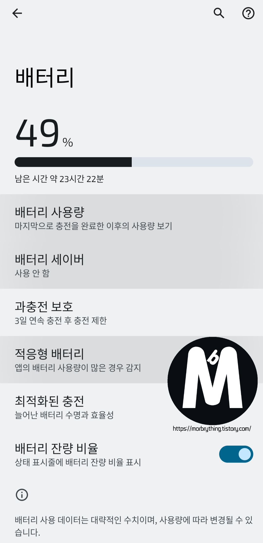 그래도 생각보다 광탈한다는 느낌은 없으며 연속 사용을 기준으로 평범한 웹서핑, 영상시청, 일반적인 앱 사용시 평균적으로 50~55분에 10%씩 닳았습니다. 실생활에서는 폰 사용이 연속적이지 않고 대기 상태에 두는 경우도 있는데, 이때 닳는 배터리도 있는 걸 고려하면 하루에 6~7시간 정도는 사용할 수 있지 않을까 싶습니다.
