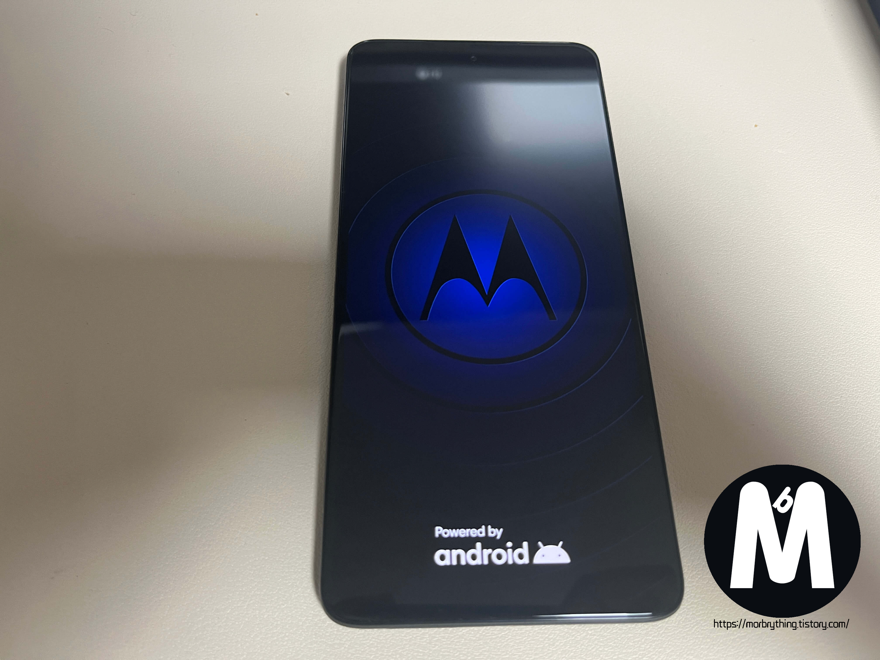 이제 다시 엣지30 본체로 돌아와서, 오른쪽에 위치한 전원버튼으로 전원을 켜봅니다. 평범한 부팅화면인데 본격적으로 구동되기 직전에 "헬로 모토" 라는 부팅음이 나오니 주의하시기 바랍니다. 깜짝 놀랐네요 ㅋㅋ