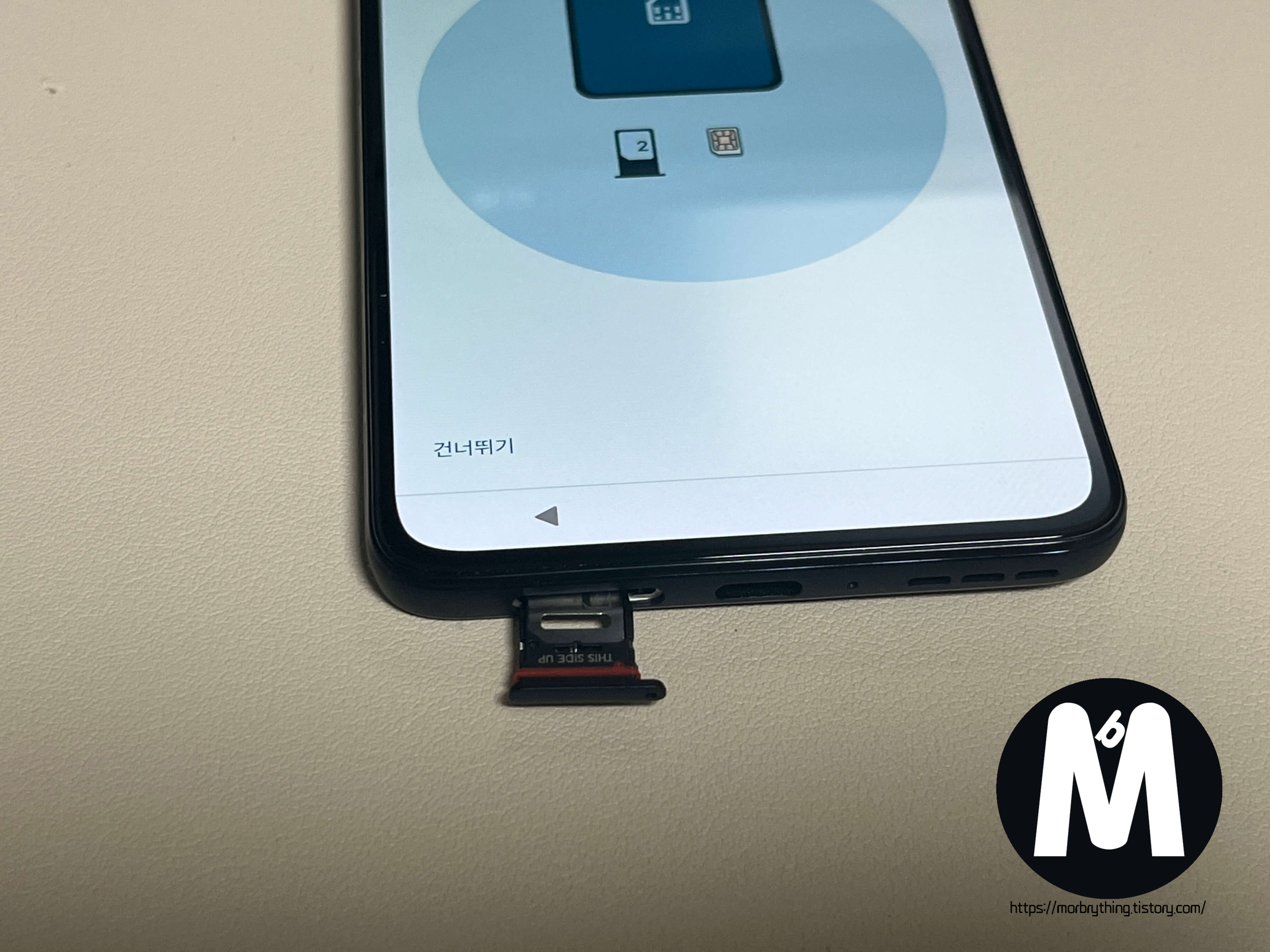 아시다시피 엣지30은 5G와 듀얼 USIM을 지원하는 제품입니다. 제품 하단에 USB-C 포트 왼쪽에 심 트레이가 위치해 있으며 구성품에 심 트레이를 빼기 위한 뾰족한 도구로 트레이를 빼주시면 됩니다.