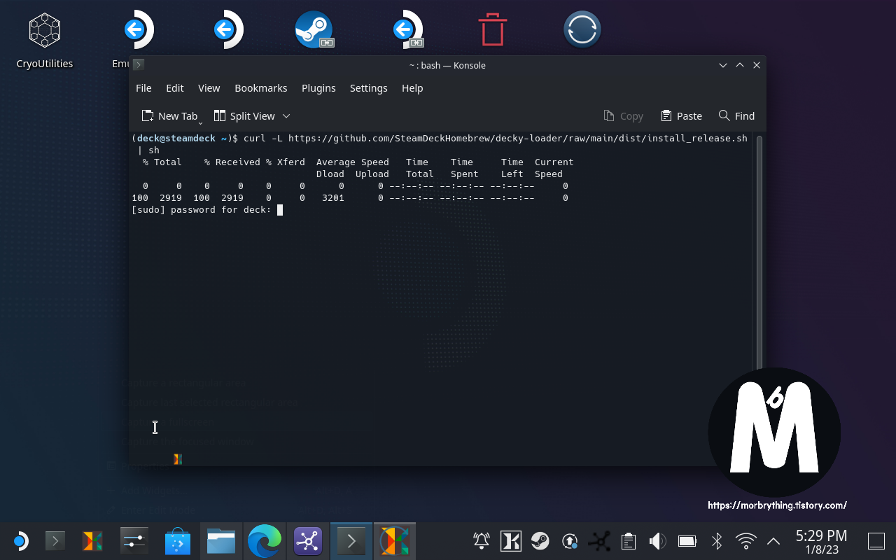 바탕화면에 있는 CryoUtilities 아이콘을 클릭하여 스크립트를 실행하면 위의 사진과 같은 창이 뜹니다. Yes를 눌러주면 패스워드 창이 뜨는데 이 글의 Decky Loader 부분에서 설정한 자신의 sudo 패스워드를 입력해주시면 됩니다.