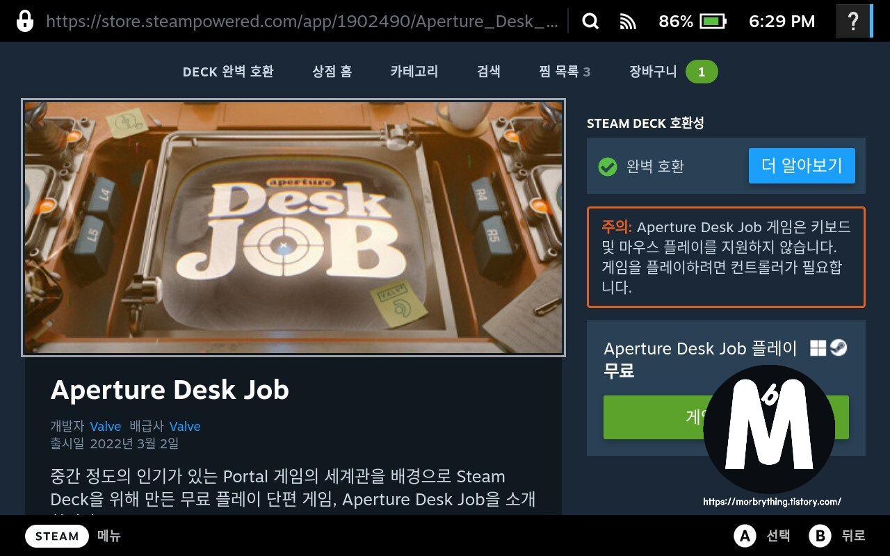 스팀덱을 처음 받으셨다면 자신의 스팀덱 버튼과 기능들이 제대로 작동하는지 알아볼 필요가 있으실텐데요. Aperture Desk Job 이라는 게임을 통해 확인하시면 됩니다. 무려 밸브가 스팀덱을 위해 만든 게임입니다!
