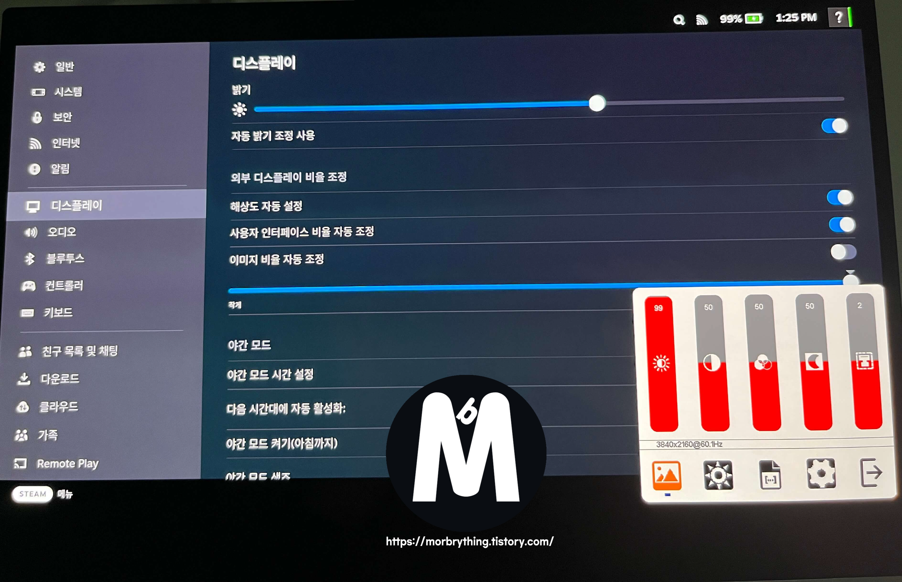 허브를 스팀덱에 연결하고 HDMI 포트를 통해 4K 포터블 모니터에 연결해본 결과 4K 60Hz 지원이 제대로 됨을 확인할 수 있었습니다.