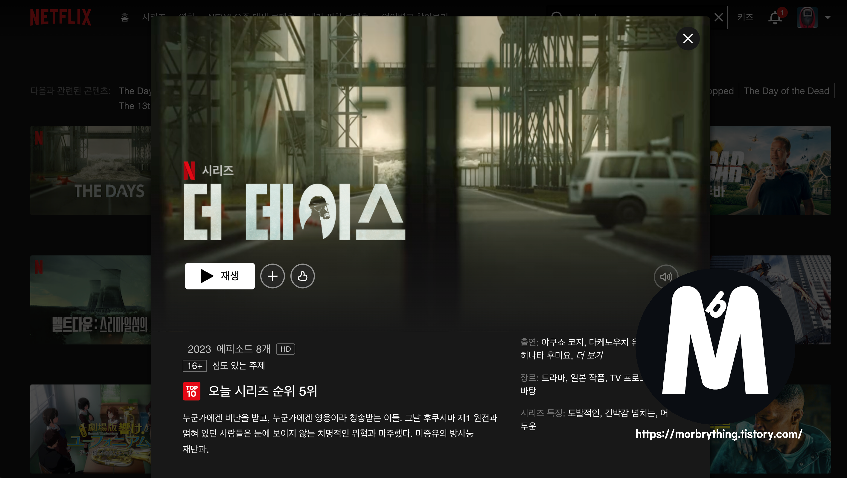 국내에는 올라와 있지 않은 드라마 더 데이스도 이제 시청이 가능합니다.