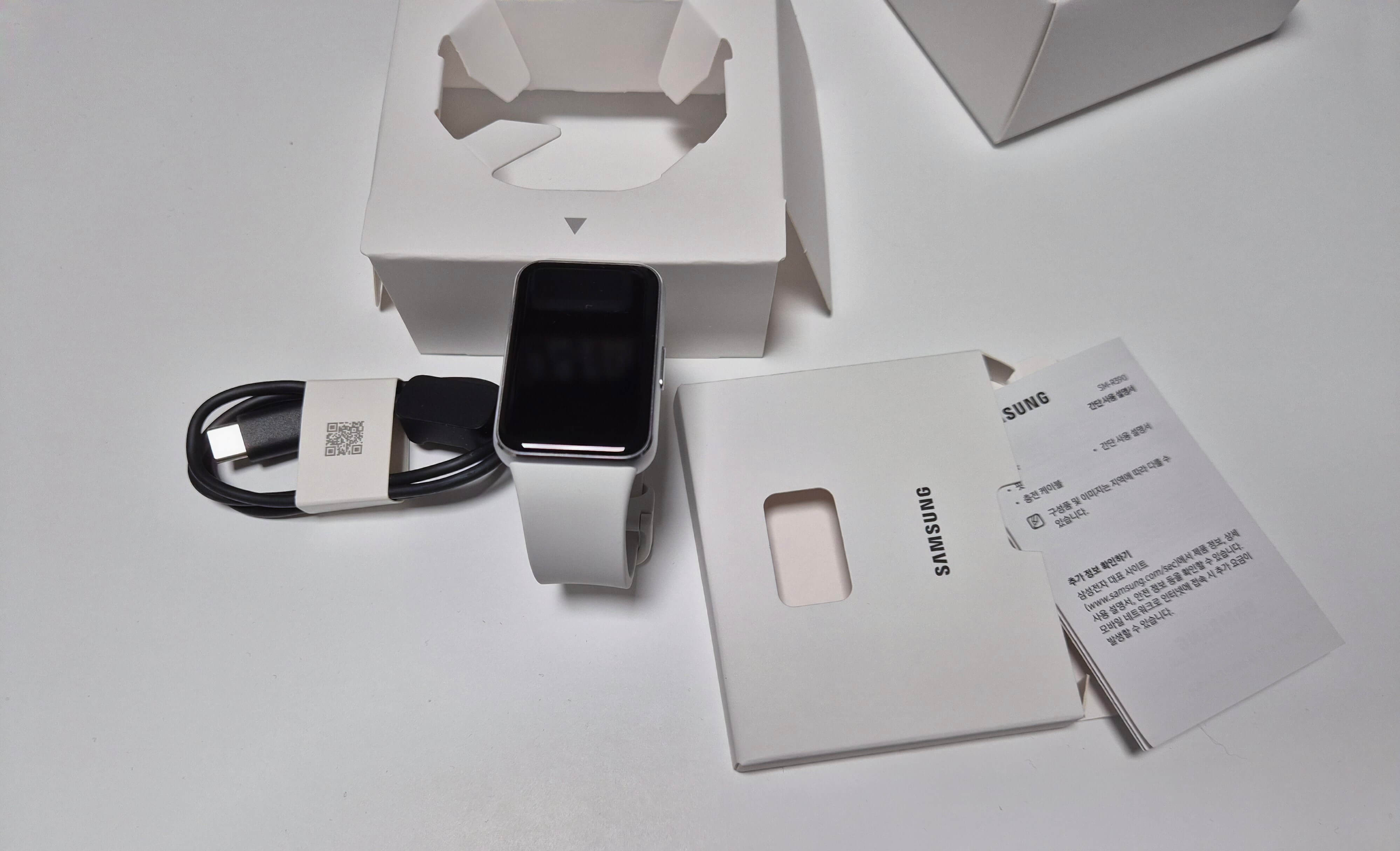 박스를 처음 뜯으면 갤럭시 핏3 제품이 바로 나오고 그 안에 구성품이 들어있습니다.