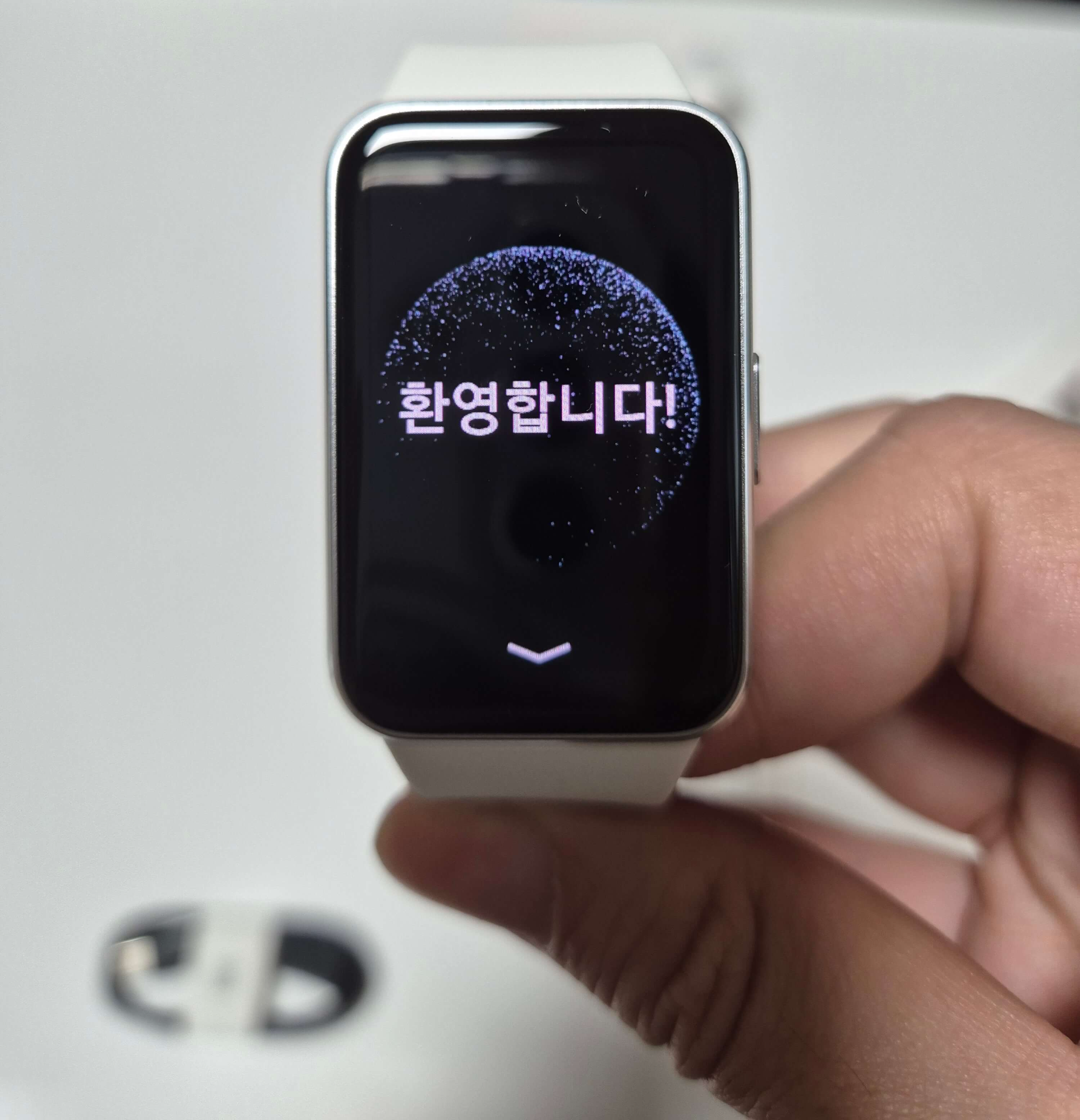 전원이 켜지고 부팅 화면과 함께 환영합니다! 라는 문구가 나타납니다.