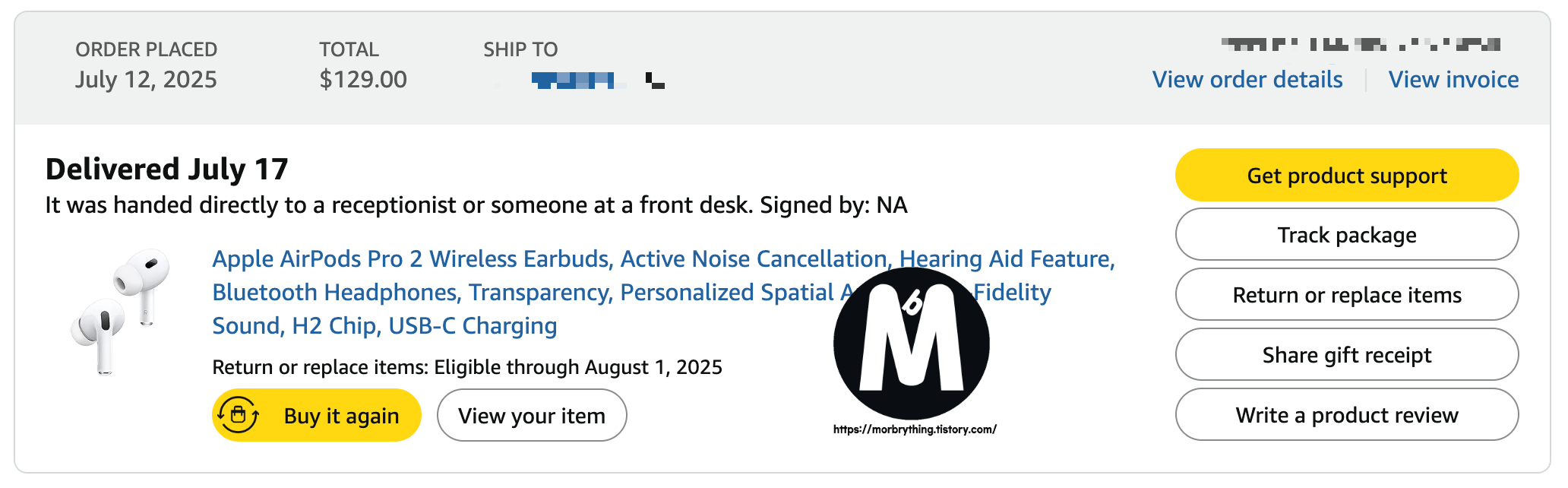 서두에서 작성한대로, 저는 이번 프라임 데이에 에어팟 프로2를 구입했습니다.
