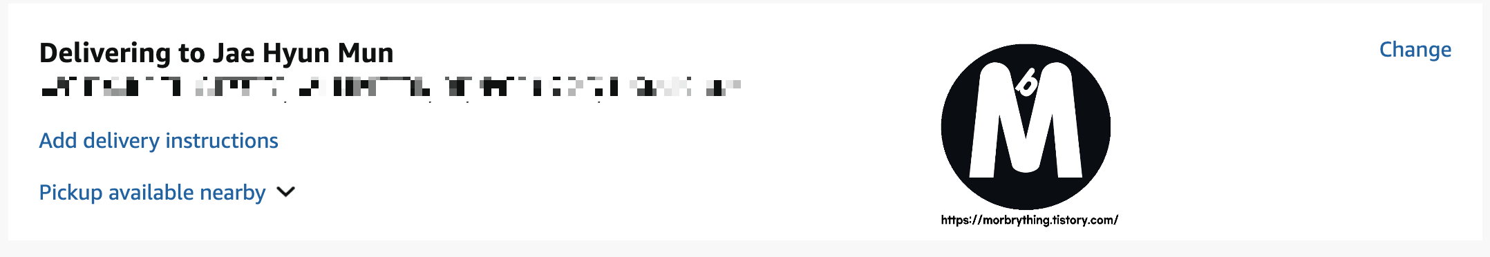 결제 페이지의 배송 주소 설정에 보면, “Add delivery instructions” 옵션이 있어