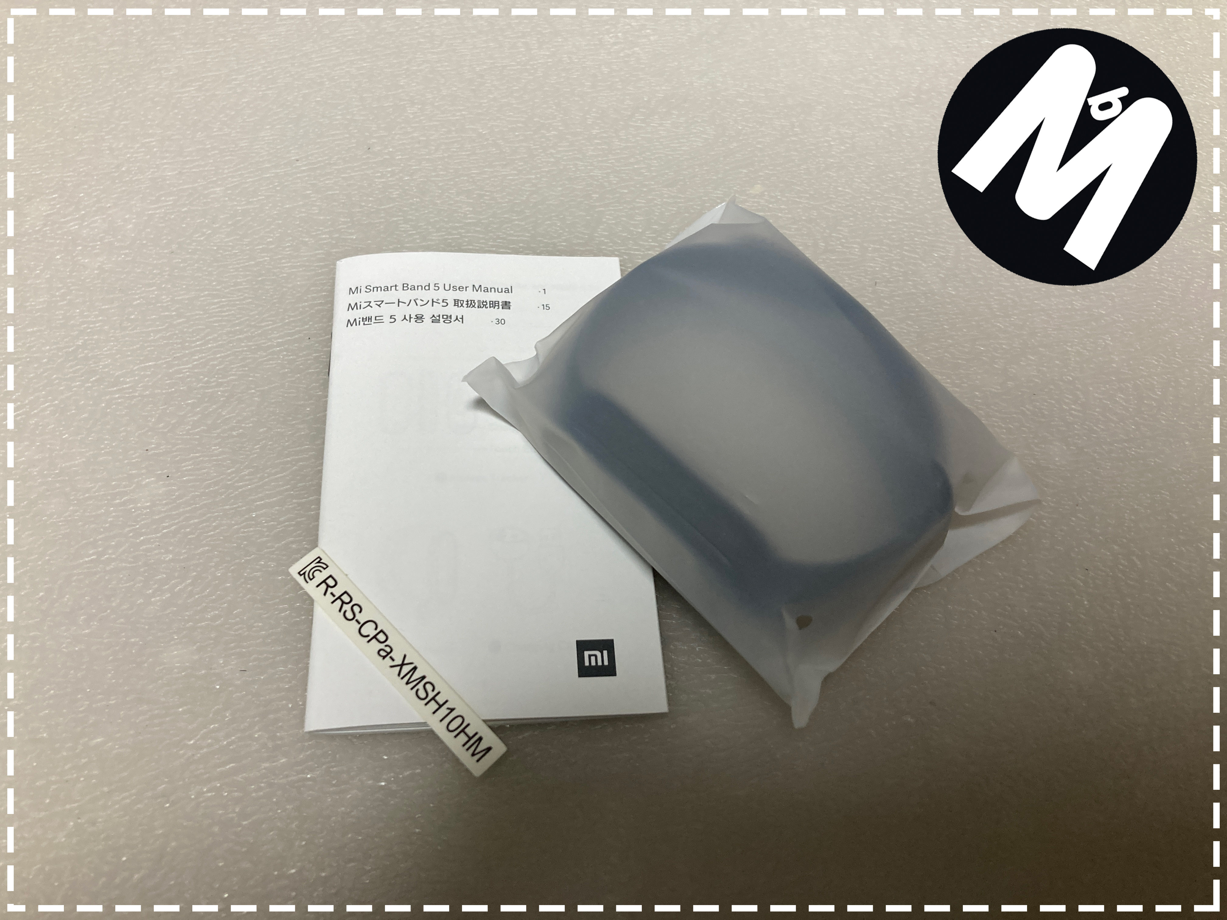 빠르게 받아본건 좋은데 뽁뽁이 하나도 둘러주지 않고 보내줘서 상자가 좀 구겨져서 왔습니다. 사실 크게 신경쓰이는 부분은 아닌데 좀 아쉽네요 ㅠ 뒷부분에 보시면 상단 중간에 'Mi 밴드 5'라는 문구와 스티커 표시로 정식발매판임을 알 수 있습니다 :)