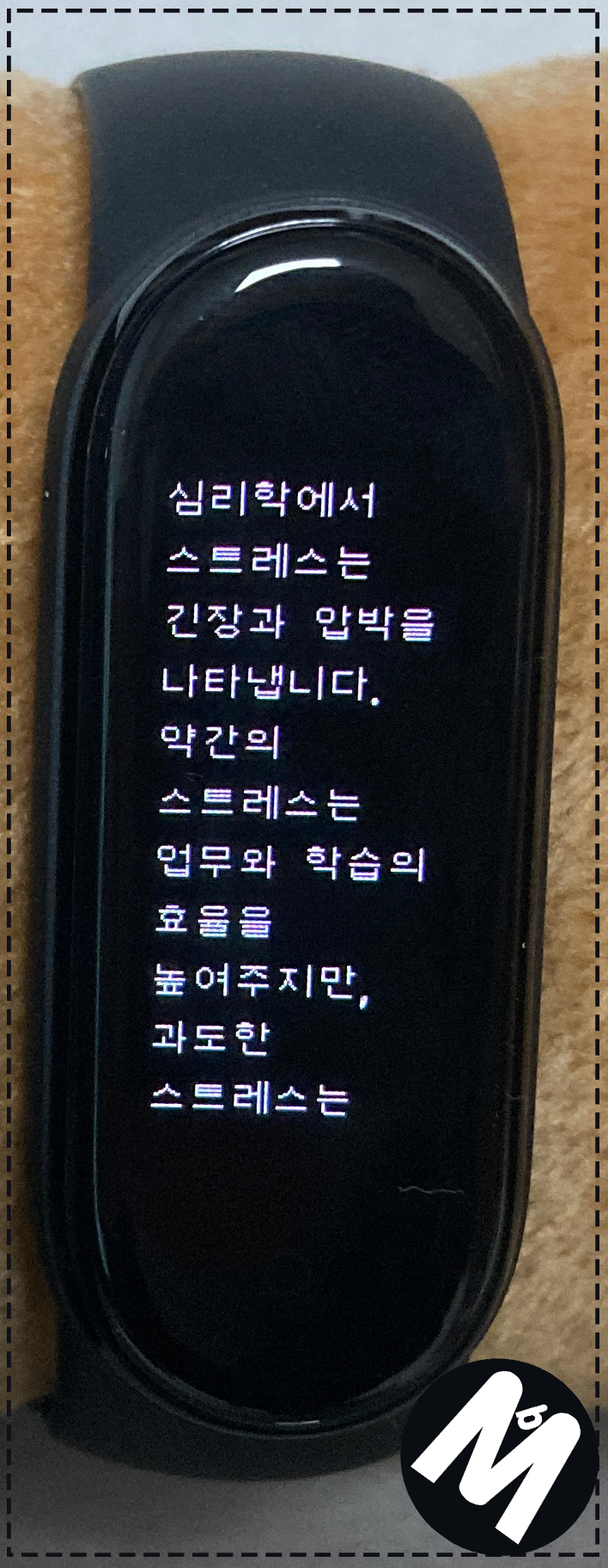 미밴드 유저분들은 보시면 아시겠지만, 사진은 미밴드3 부터 현재 미밴드5에 이르기까지 샤오미에서 기본으로 채택하고 있는 한글 폰트입니다. 워낙에 미밴드에 출력되어 나오는 폰트 자체 크기도 작은데다가 가독성 마저 안 좋아서 유저들 사이에서는 불만이 많은 폰트이기도 합니다.