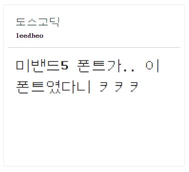 그나마 옛날 싸이월드 감성을 떠오르게 하는 '도스샘물' 이나 둥근모꼴을 떠오르게 하는 '삼국지3글꼴' 정도는 적용해볼만한 것 같은데 시간 되면 한번 적용해봐야 겠습니다.