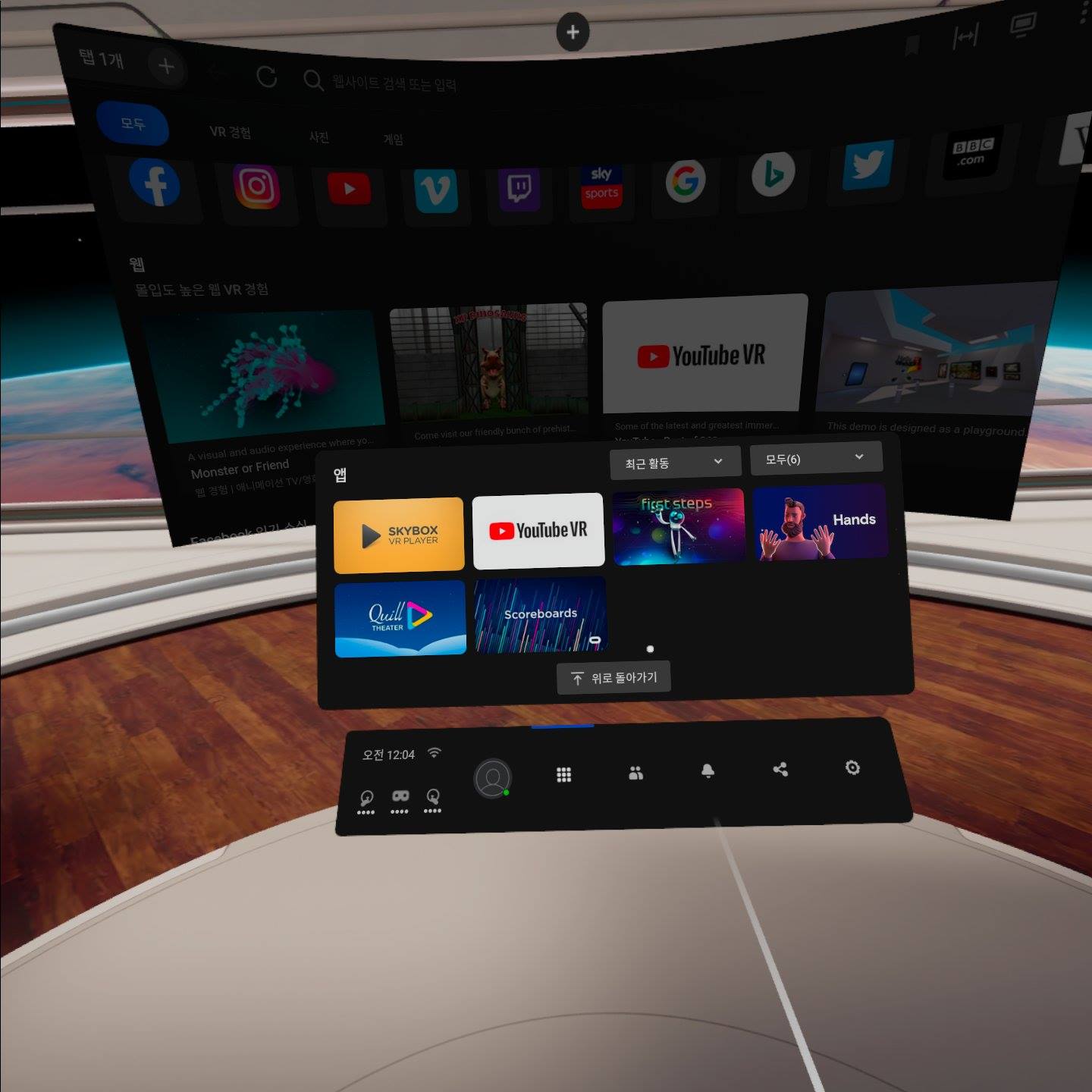 초반에 메인화면 뜨고나서는 예전 오큘러스 고 사용할때 받아두었던 스카이박스와 유튜브 VR부터 다운로드 받아주었습니다. 스카이박스는 지금보니까 유료화 되었던데 미리 받아뒀던게 신의 한수 였던것 같습니다 ㄷㄷ