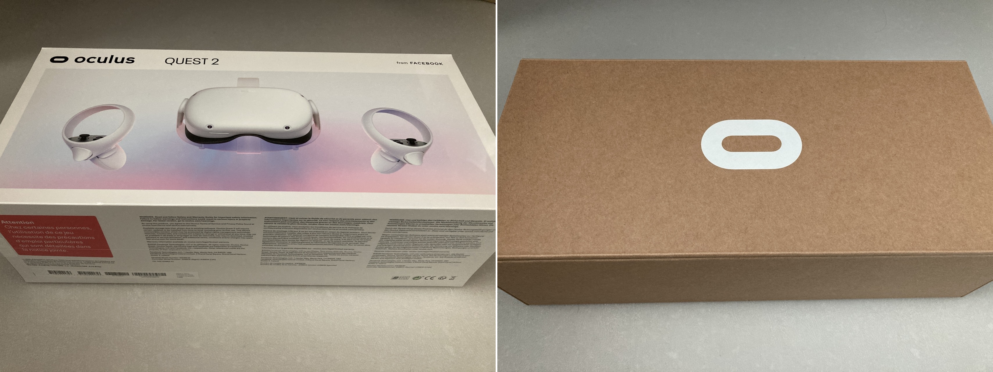 드디어 도착한 오큘러스 퀘스트2 박스입니다. 생각보다 제법 크더군요 겉 패키지를 벗기면 오큘러스 로고가 보이는 종이박스가 나타납니다. 그리고 박스의 윗면을 들어올리면..