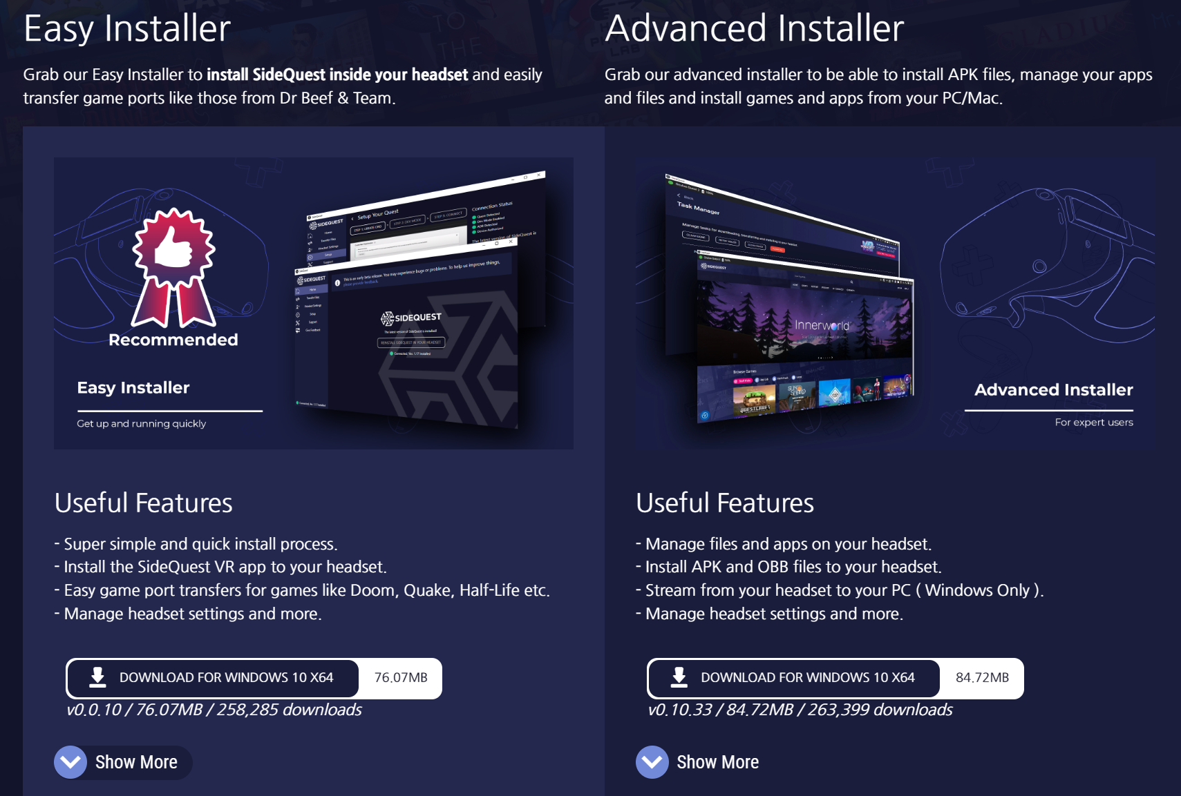 위의 링크로 접속하셔서 사이드퀘스트 프로그램을 설치해주시면 되는데 PC 설치는 Advanced Installer 로 설치해주셔야 합니다. 설치후 실행하면 프로그램 자체적으로 업데이트가 있을 경우 업데이트를 진행합니다. 이후 완료되면 사용하시면 됩니다.
