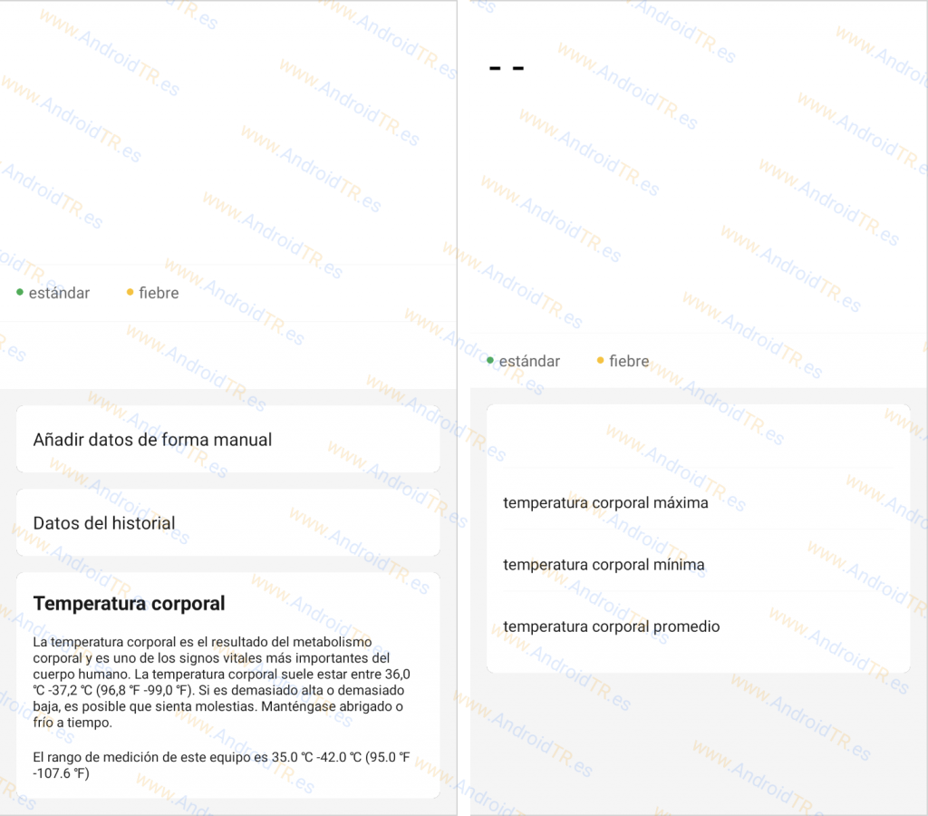 최근 앱의 최신 버전에서 체온 측정 기능에 대한 UI가 포착되었는데 최대, 최소 및 평균 측정 온도를 제공하며 측정한 과거의 데이터를 포함한 모든 온도 기록을 볼 수 있도록 구성시킨것을 알 수 있습니다.